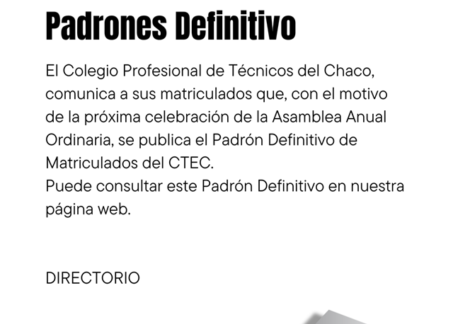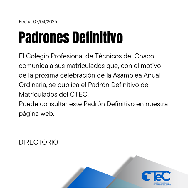 Padrones definitivos 7 Abr,2026 prensa Se puede consultar el padrón de finitivo. VER / DESCARGAR PADRÓN